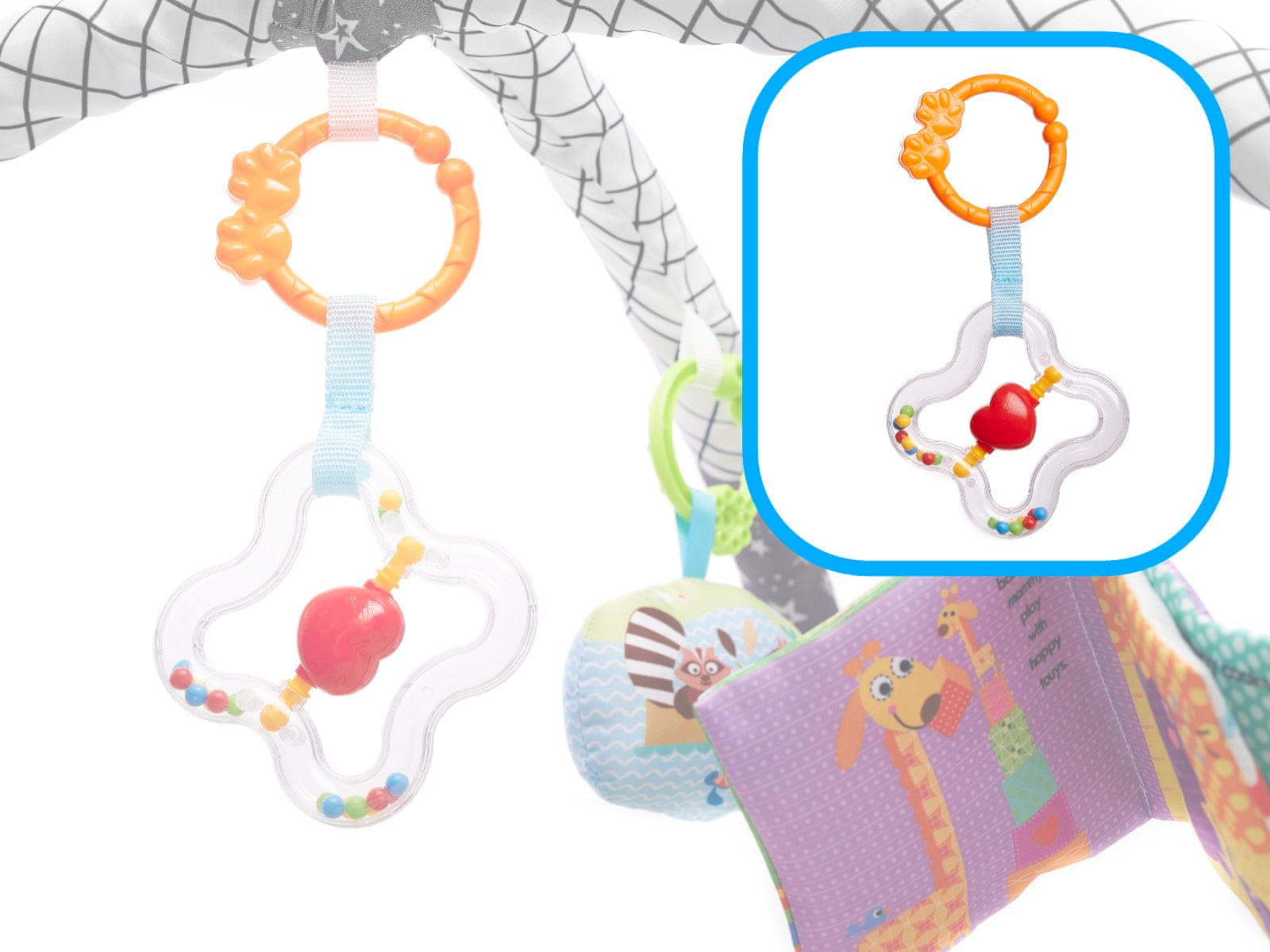IZOBRAŽEVALNA PODLOGA ZA DOJENČKE Z ŽOGICAMI Večnamenska podloga za dojenčke bo poskrbela za pravilen razvoj dojenčka od prvih trenutkov življenja. Izdelana s pozornostjo do vsake podrobnosti, s posebnim poudarkom na potrebah dojenčkov, ki odkrivajo svet in njihovih staršev. Blazinica raste z otrokom. Delovalo bo na vseh stopnjah razvoja. Ena podloga, veliko možnosti! Podloga s stajico – dojenček bo lahko opazoval okolico leže na hrbtu ali trebuhu. Stajica bo ustvarila občutek varnosti tako za otroka kot za starša. Podloga z igračami, ki visijo na palici – pisane igrače, ki visijo na palici, pritegnejo otrokovo pozornost in ga motivirajo za vadbo ter krepitev vratnih mišic, rok in nog. Poleg tega bo kot nalašč za prve poskuse samostojnega sedenja. Suhi bazen – napolnite stajico z žogicami, da dobite podlogo brez prečke – po odstranitvi lokov bo odpadla tudi mreža, ki tvori stajico, nato pa bo podloga odlično izolirala mrzlo podlago, definirala igralno površino in uspešno nadomestila preprogo v otroški sobi. Pisane ropotuljice in knjiga s šelestečimi stranmi pritegnejo otrokovo pozornost in spodbujajo občutek za vzorec, sluh in dotik. Poleg tega bodo odličen uvod v raziskovanje sveta oblik in barv. Sodoben stil in pozornost do detajlov bosta navdušila starše. Vsebina kompleta: podloga/stajica 18× žogica knjiga s šelestečimi stranmi 2 plišasti igrači s piskalnicami 2 ropotulji Dimenzije podloge: 76 cm x 76 cm višina od tal do naglavnega traku: 50 cm neto višina: 15 cm mere embalaže: 56 cm x 50 cm x 8,5 cm