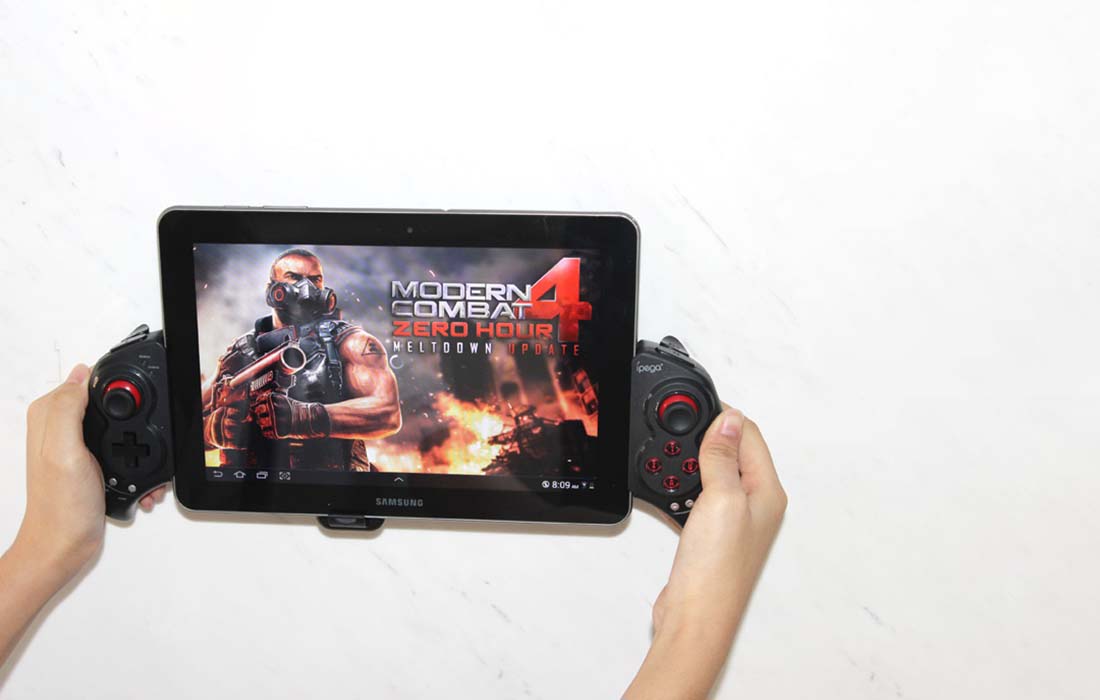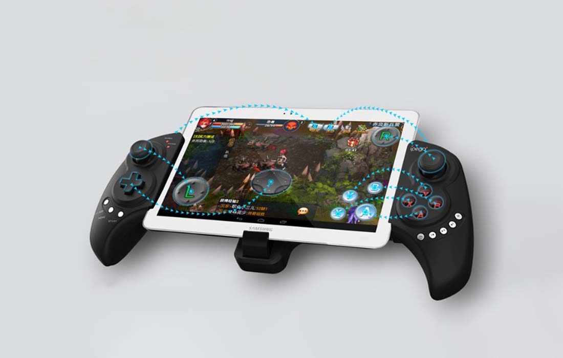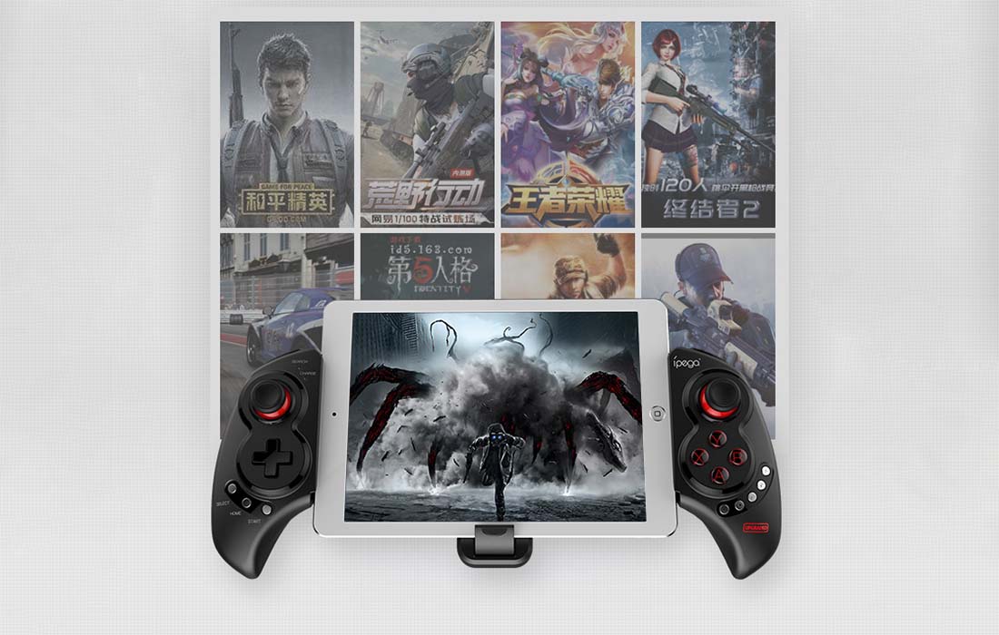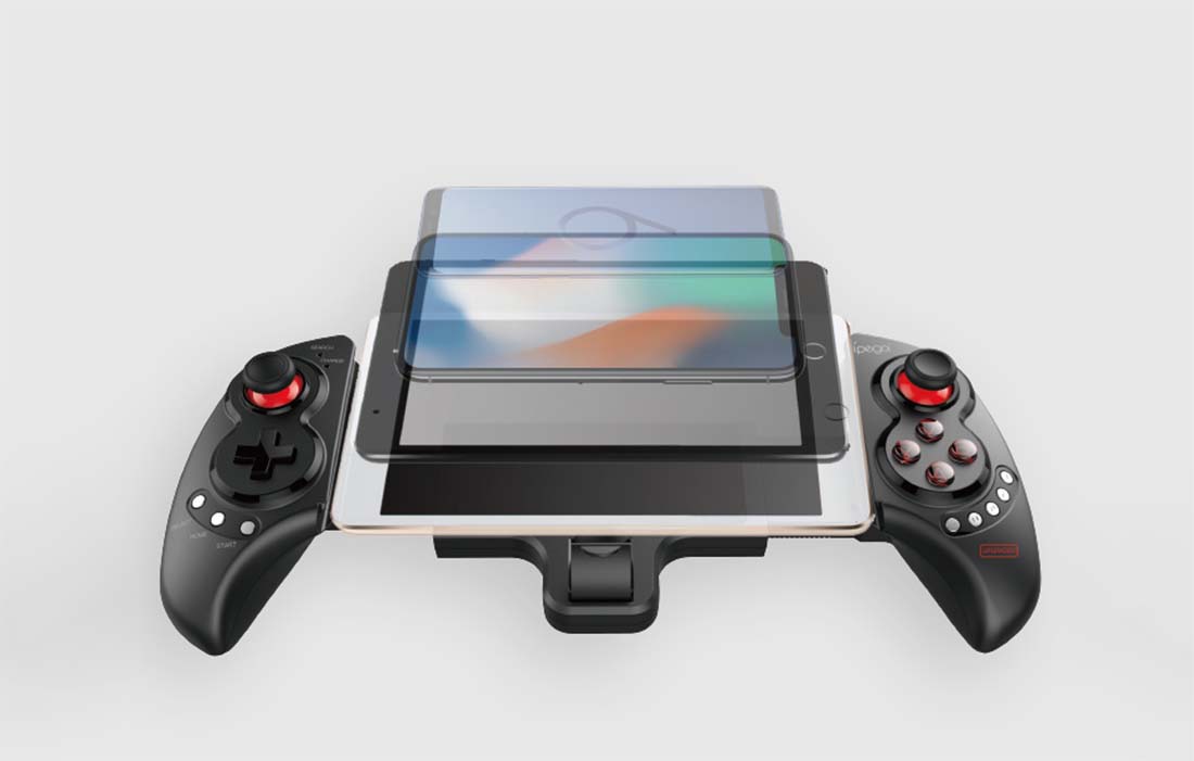 Kontroler blagovne znamke iPEGA ima izboljšano ergonomsko obliko. Odlično se prilega rokam in je videti zelo dobro. Poleg tega je nosilec za telefon ali tablični računalnik zasnovan tako, da vaši napravi zagotavlja potrebno stabilnost in jo ščiti pred padcem.
