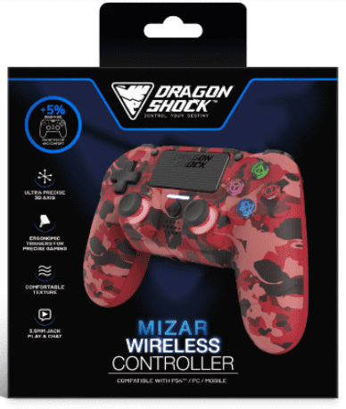 DragonShock Mizar kontroler, brezžičen, PS4, PC, rdeč