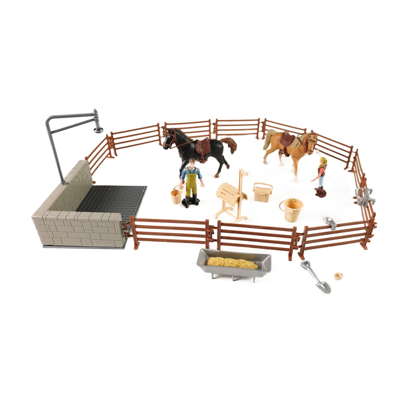 Kaj pravite na to, da bi zgradili svoj lasten pašnik z ogrado za konje? S tem kompletom imate odlično priložnost, saj dobite ograjo, prostor za umivanje konj, od vas pa je odvisno, kakšne velikosti in oblike bo vaš pašnik. V paketu boste našli tudi figure konja, oskrbnikov in druge dodatke.