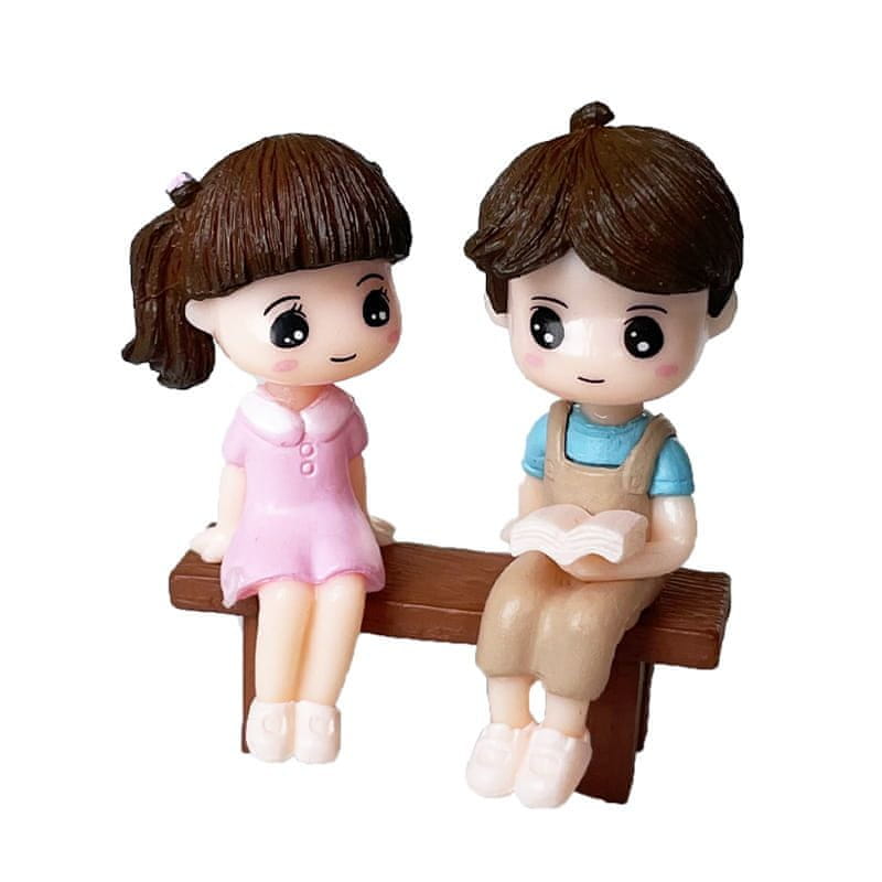 Deklica v roza obleki in fant na klopci s knjigo Celoten opis