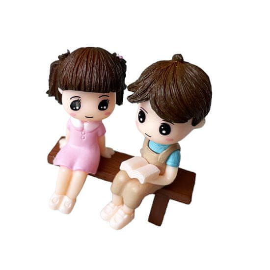 shumee Deklica v roza obleki in fant na klopci s knjigo