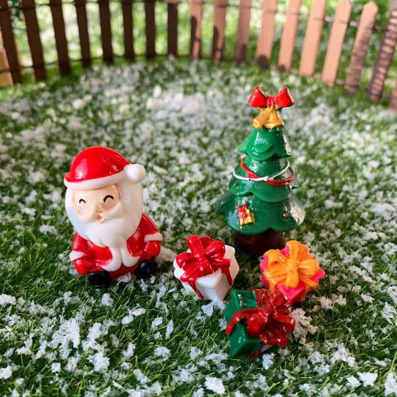 Pisana figura božičnega drevesca z rdečo pentljo in zvončki na vrhu.