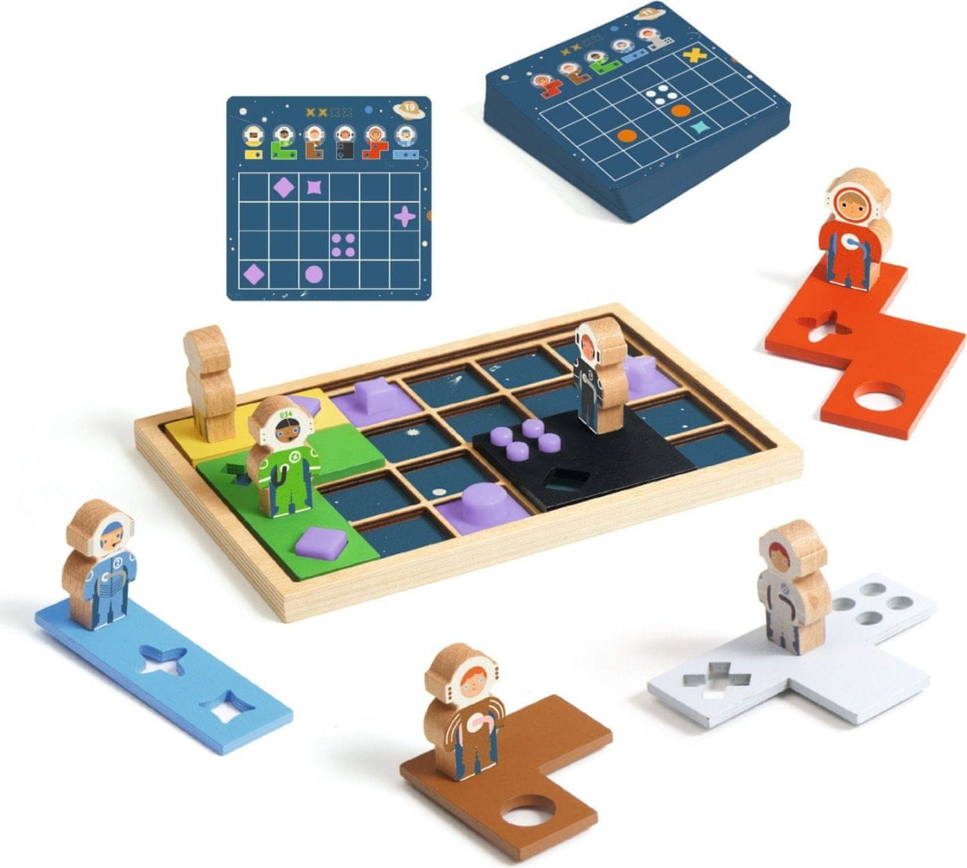 Za ta izziv je možna samo ena rešitev. Rešitev je na voljo na koncu knjižice. 4 stopnje težavnosti. Tema, ki jo imajo otroci radi: vesolje Razvija potrpežljivost, logiko in sklepanje. Les s certifikatom FSC. 1 lesena vesoljska plošča z mrežo, 7 lesenih figur, 13 plastičnih figur, 30 dvostranskih kart z izzivi, pravila igre.