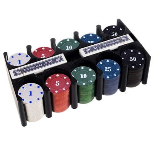 - 200 žetonov (z različnimi 5, 10, 20, 50, 100)