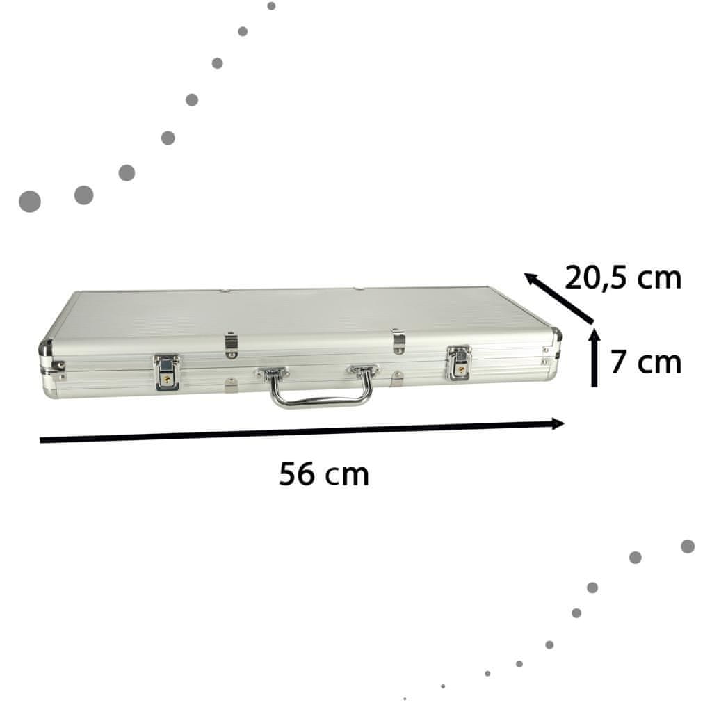 Poker set vključuje vse, kar potrebujete za uživanje v razburljivem poker večeru s prijatelji ali družino. S tem kompletom lahko ustvarite igralniško vzdušje kar v svoji dnevni sobi. Vsebina paketa vključuje 500 žetonov, ki vam omogočajo stavljanje in zvišanje stav. Z dvema kompletoma kart lahko igrate različne različice pokra ali drugih iger s kartami.