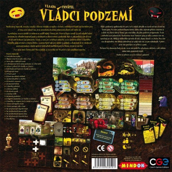 Paket vsebuje: Osrednji igralni načrt, obojestranski igralni načrt leta in bitke, igralni načrt oddaljenih dežel, 4 obojestranske igralne načrte ječ, 32 kart ukazov, 8 kart pregleda, 18 kart bitk, 27 kart pasti, 9 kart posebnih dogodkov, 24 ploščic pošasti, 16 ploščic sob, 32 ploščic junakov, 2 ploščici paladinov, 3 žetoni dogodkov, 42 žetonov predorov, 3 žetoni trolov, 20 žetonov predmetov, 12 žetonov služabnikov, 4 kocke z lestvico zla, 1 žeton igralca začetnika, 1 žeton napredovanja in boja v letu, 40 plastičnih figuric impov, 30 lesenih žetonov hrane, 30 lesenih žetonov zlata, 40 plastičnih žetonov krvi, češka in slovaška pravila.