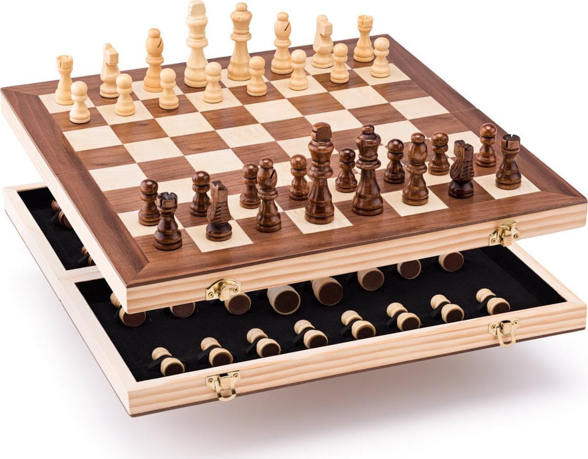 Šah je ena najbolj priljubljenih klasičnih družabnih iger na svetu. Pridobila je številne ljubitelje vseh starosti z vseh koncev sveta in se upravičeno imenuje „kraljevska igra“. Igra vsebuje: lesene šahovske figure, leseno oblazinjeno odpiralno šahovnico z gumicami za pritrditev figur. Dimenzije: šahovnica 38 × 38 cm, višina kralja 7,6 cm, širina kvadrata 4,1 × 4,1 cm.