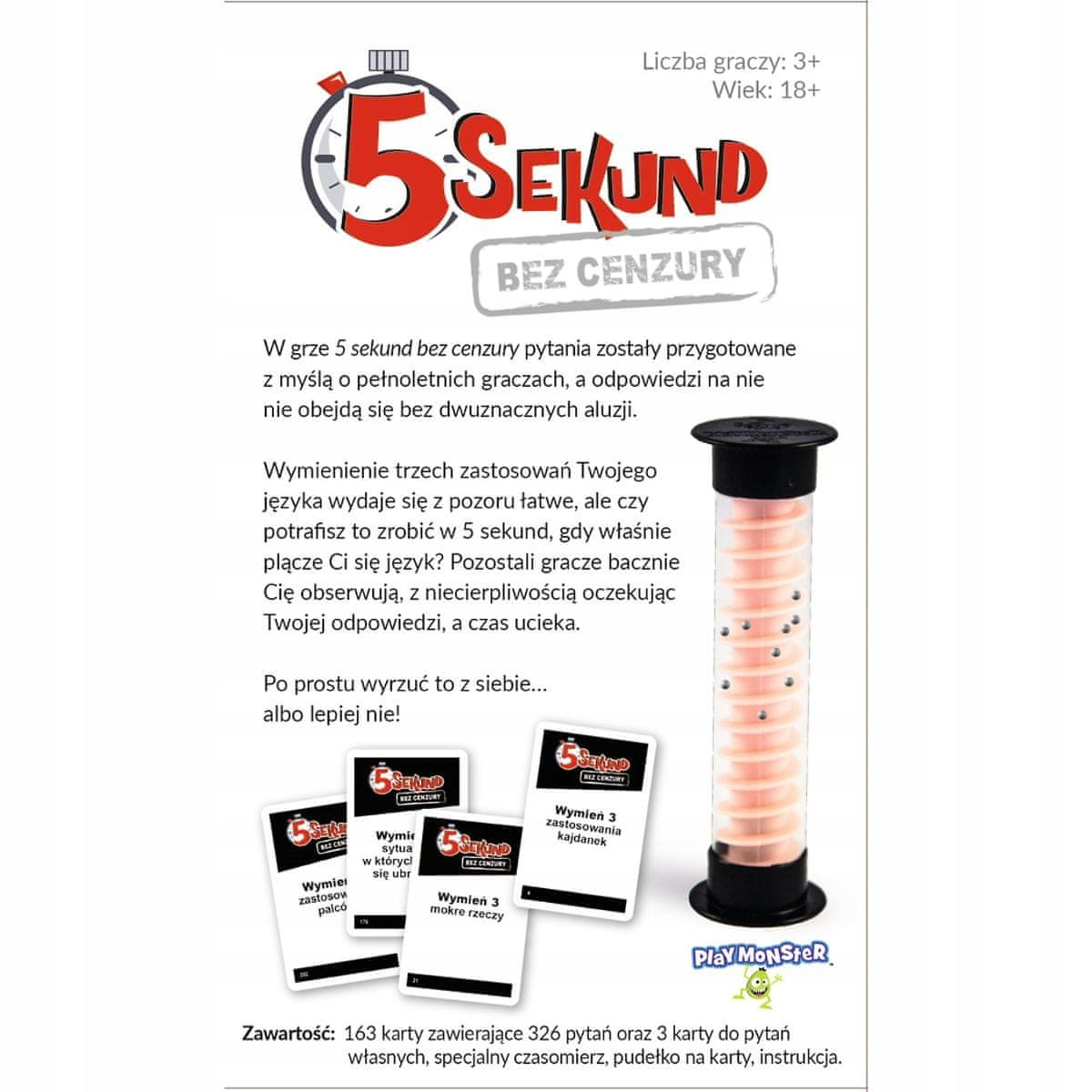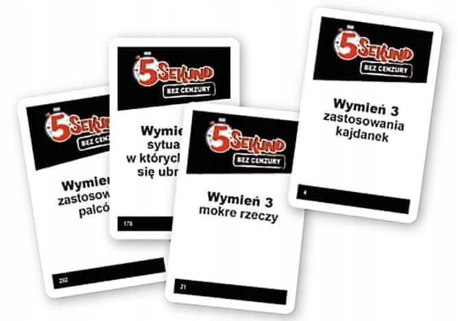 V igri 5 sekund necenzurirano so vprašanja pripravljena z mislijo na odrasle igralce, odgovori pa bodo neizogibno vsebovali dvoumne aluzije.