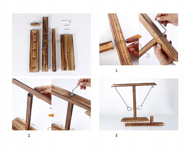 - Visokokakovostna izdelava: Masivni leseni in kovinski obroči zagotavljajo vzdržljivost in eleganten videz.