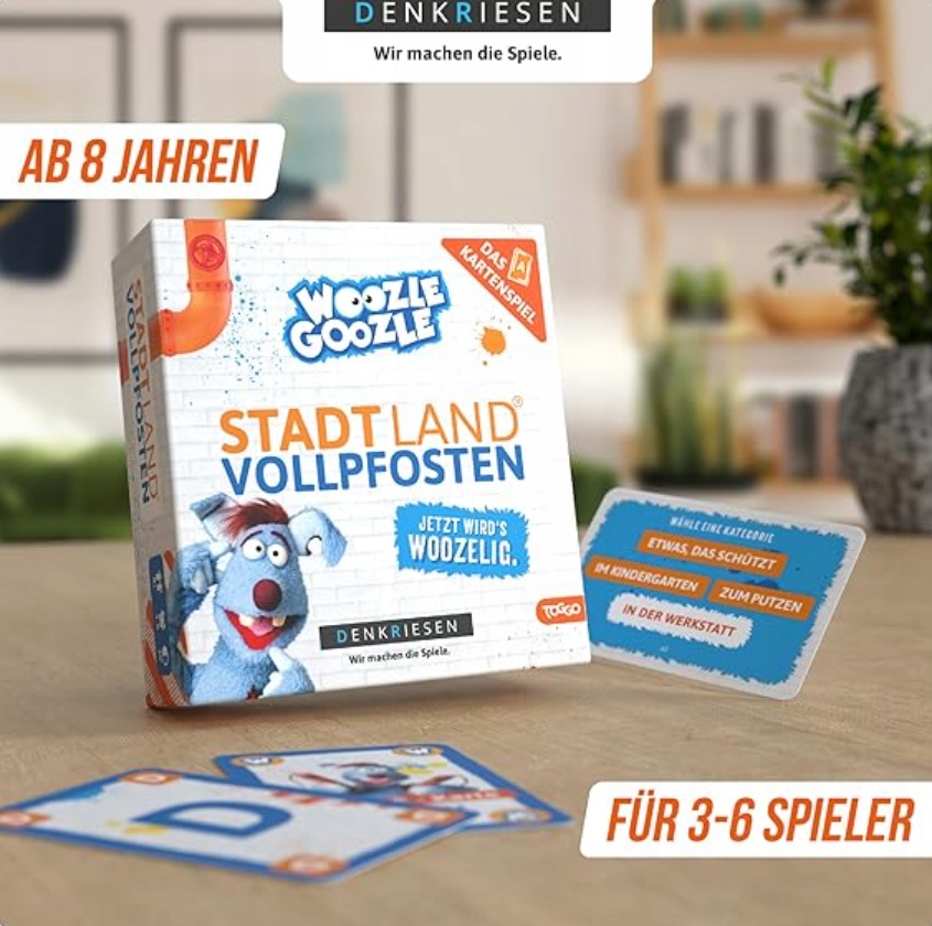 •      Igra s kartami za otroke in odrasle – izdaja WOOZLE GOOZLE podjetja Stadt Land VOLLPFOSTEN ponuja pametno zabavo za vse starosti. Kot ustvarjalna igra s kartami za otroke, najstnike in odrasle, stare 8 let in več, ponuja hitre kroge, polne zahtevnega razmišljanja in smeha.