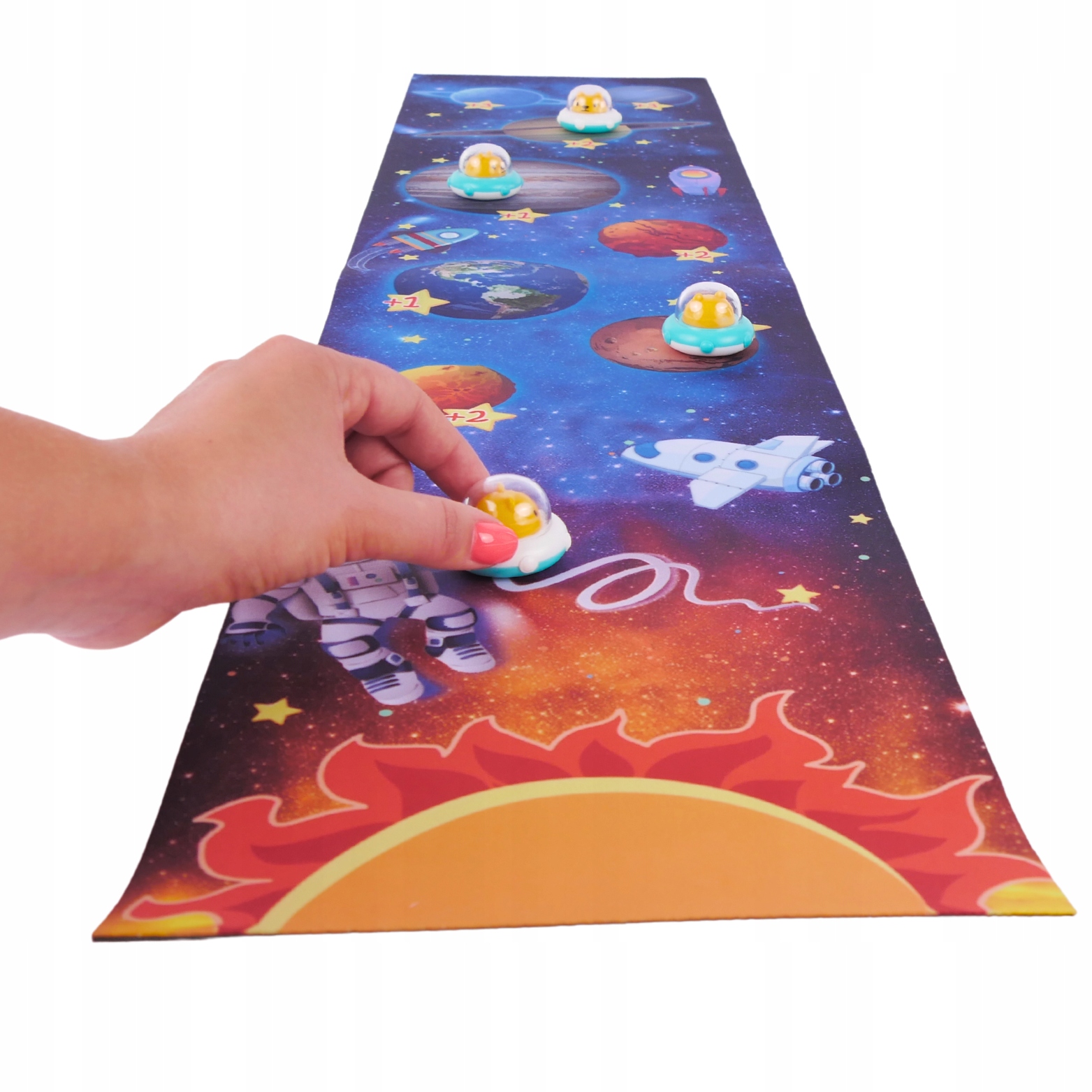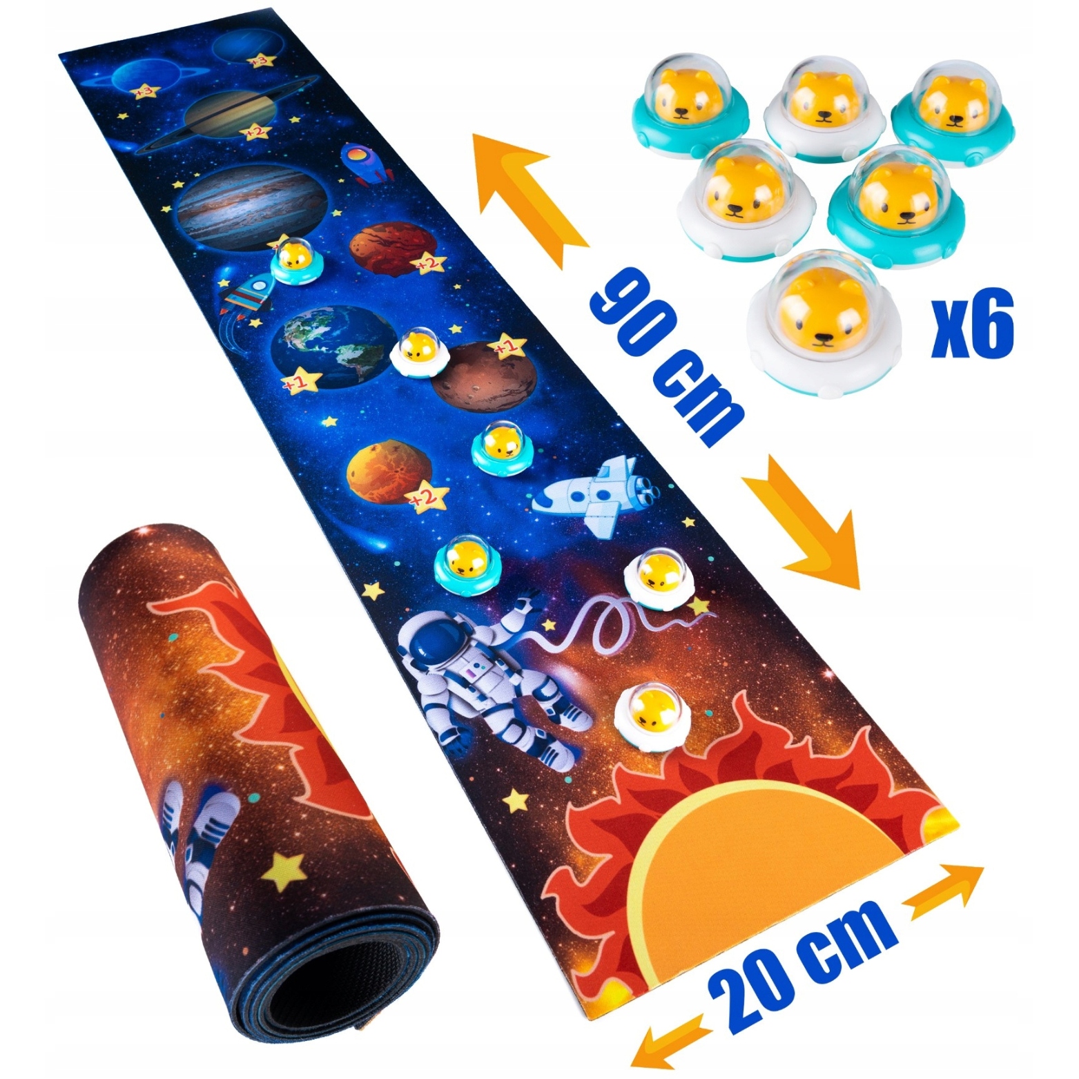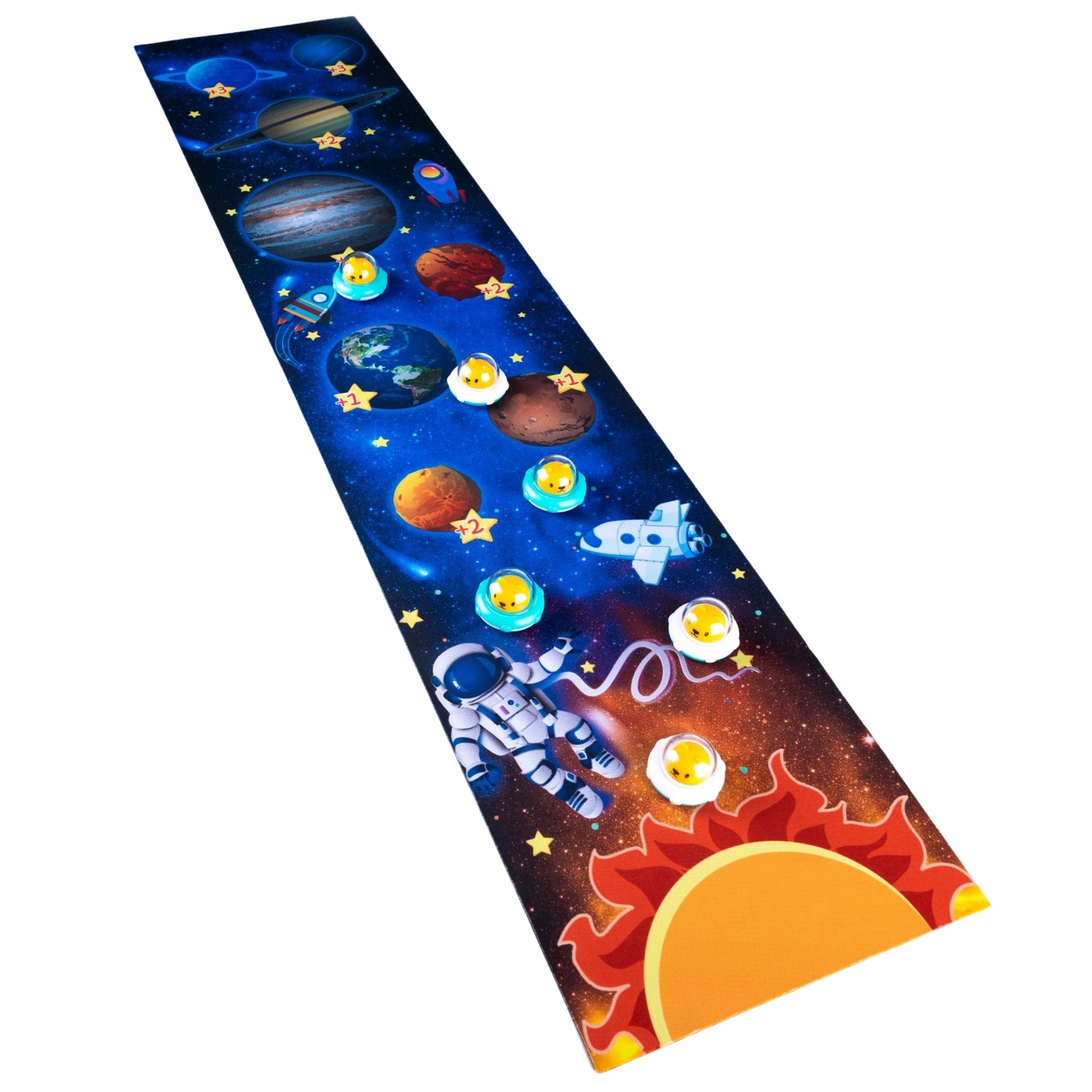 Predstavljamo izjemen komplet za otroke igre curlinga, , ki mlade raziskovalce popelje na vznemirljivo potovanje skozi Osončje, medplanetarne poti, vse obdano s pisanimi pikami, ki označujejo rezultat.