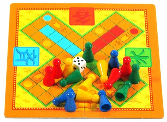 Igralci vržejo kocko in premaknejo svoje kmetje naprej (v smeri urinega kazalca) za število polj, ki jih označuje kocka. Igra se igra enkrat, razen če kocka pokaže šestico. Šest igralcu omogoča dodaten met ali premaknitev kmeta z baze na začetno polje (vsak igralec ima svoje začetno polje, označeno z določeno barvo).