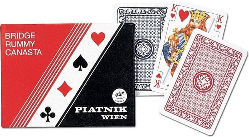Klasične, zelo priljubljene igralne karte Piatnik. Priložena sta dva kompleta, idealna za bridge, poker, remi in druge igre.