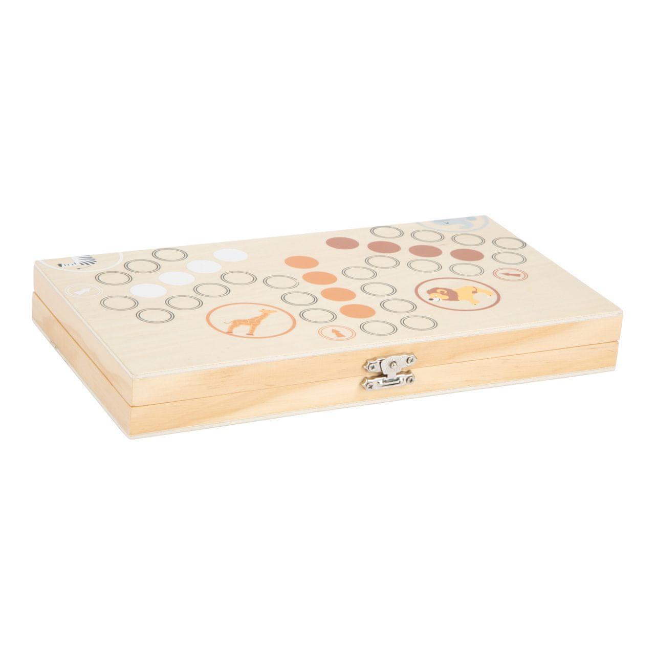 Odlična zabava za do 6 igralcev vseh starosti! V tej klasični igri iz lesa morate živali spraviti iz savane v hišo. Zebra, žirafa, krokodil, slon, leopard in lev so videti skoraj resnični. Te figure so primerne za otroke, saj so lesene in imajo plišaste elemente. Igralna plošča je praktična, ko jo zložite, postane spet škatla za shranjevanje. Dve igralni kocki vam pokažeta, koliko prostorov lahko premaknete. Klasična namizna igra v trendovskem dizajnu, ki bo otroke naučila šteti, prepoznavati barve in živali. Otroci se bodo naučili tudi, kako izgubiti. Idealna tudi za na pot . Glavneznačilnosti: za 2–6 igralcevigralna plošča, 24 figur in 2 kockipraktično pakiranje