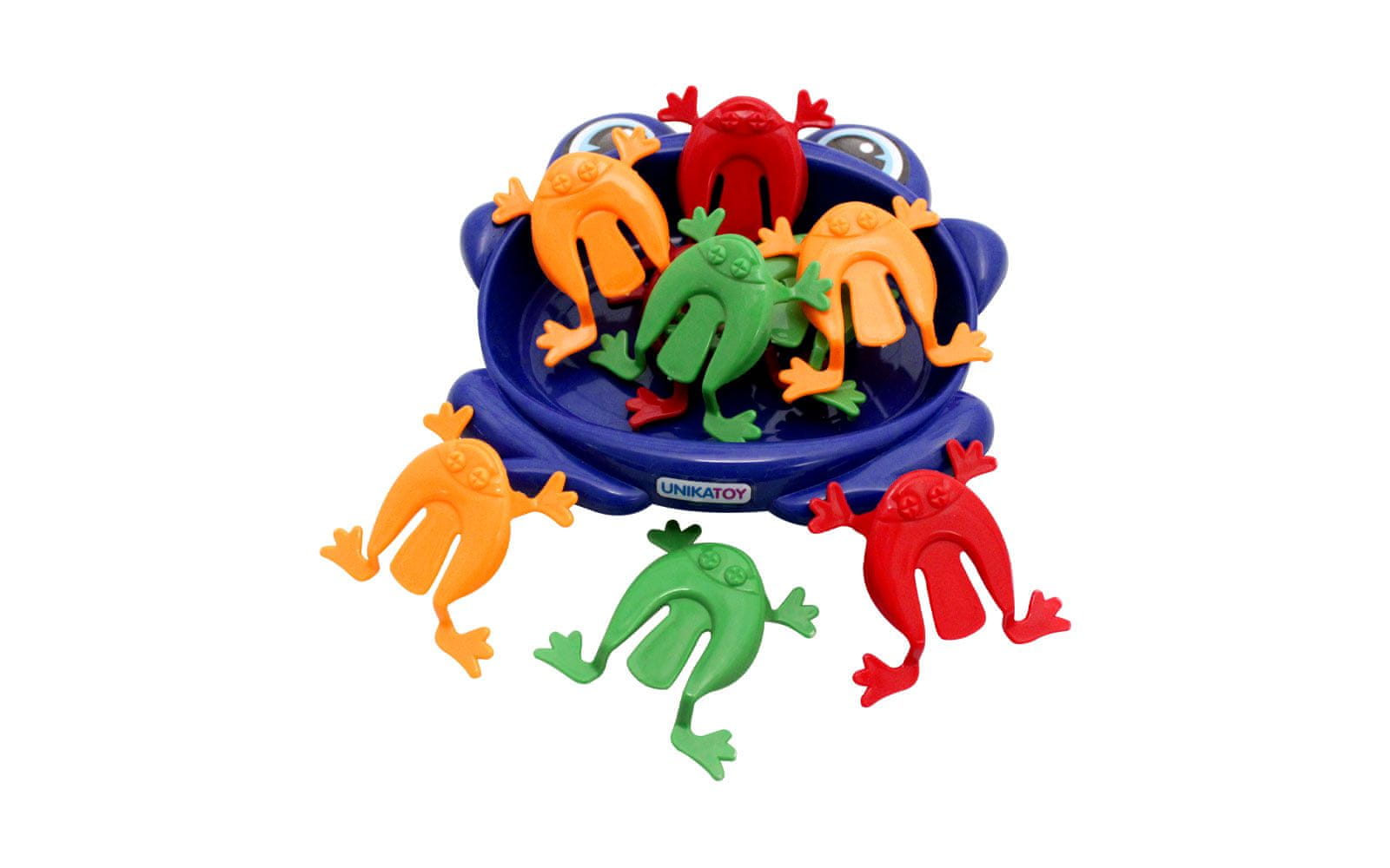 Družabna igra Male žabice je namenjena otrokom od 3. leta naprej. Igrata jo lahko 2 ali več igralcev. Zmagovalec je tisti, ki prvi spravi vse žabice v posodo.