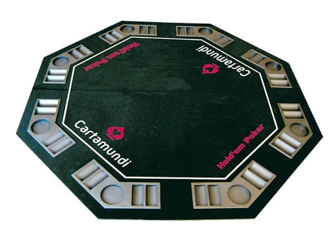 Kakovostna poker miza Cartamundi omogoča igranje do 8 igralcem hkrati. Opremljena je s podstavkom, zato jo enostavno položite na običajno mizo in prizorišče za partijo pokra je pripravljeno. Poleg podstavka je priložen še „Chip Holder“.