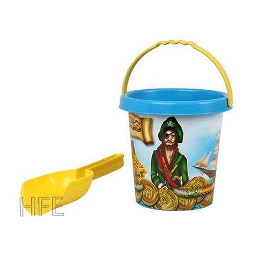 Je idealen dodatek za otroke za na plažo ali peskovnik. Set za plažo pirat je nepogrešljiv pripomoček za igro v peskovniku ali plaži in vsebuje vedro ter lopatko. S pomočjo seta otroci lahko zgradijo peščeni grad ali pa ga uporabijo za kopanje, prenos vode in zalivanje. Vedro je svetlo modre barve z rumenim ročajem in rumeno lopatko. Vedro ima motiv pirata in bo navdušil vse male nadobudne ustvarjalce. Otroci se bodo z njim zabavali na vrtu, v peskovniku ali pa na plaži. Vedro ima obseg 14 cm. Ni primerno za otroke do 3. leta starosti, zaradi možnosti zaužitja majhnih delcev.