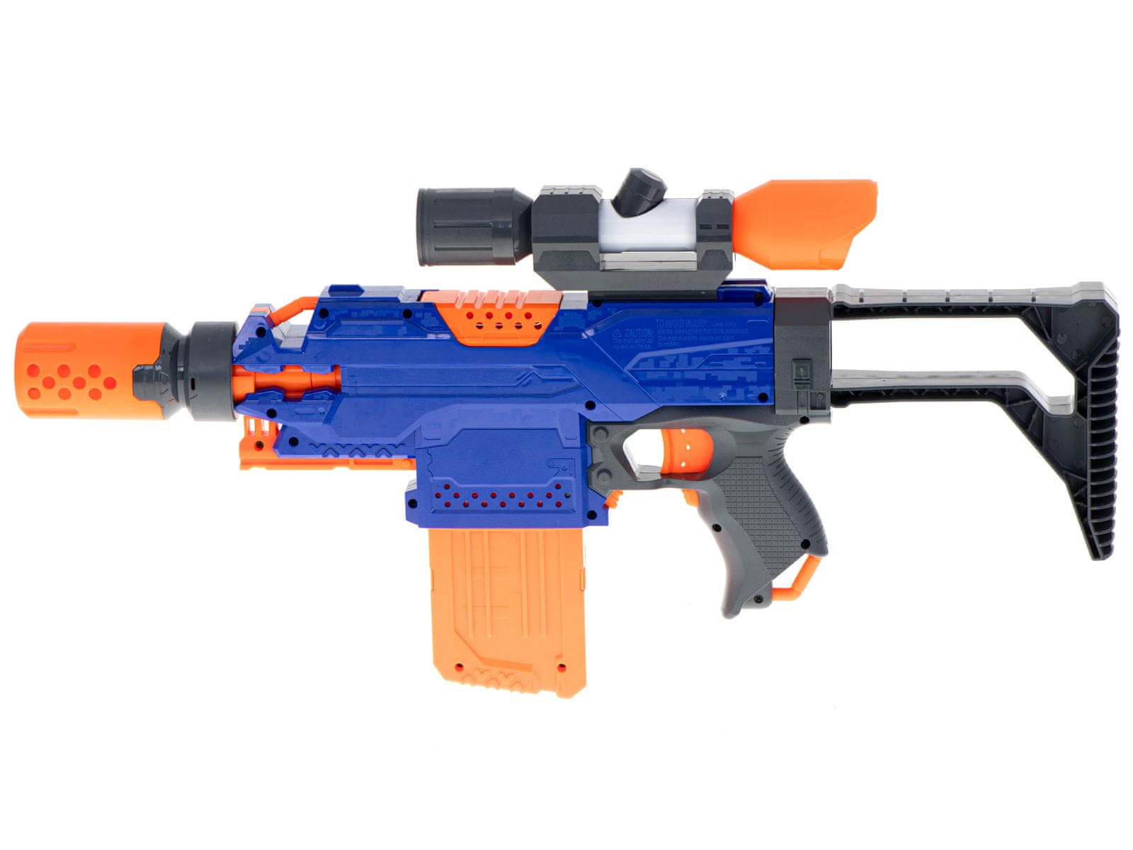 Fantastična brzostrelka Blaze Storm. Popolno orožje za malega vojaka. Spodbuja motorično koordinacijo. Priloženo: puška, 48 puščic, nabojnik, snemljiv namerilnik. Napajanje: 4× baterije AA 1,5 V (niso vključene). Dimenzije puške: 34×22×5cm.