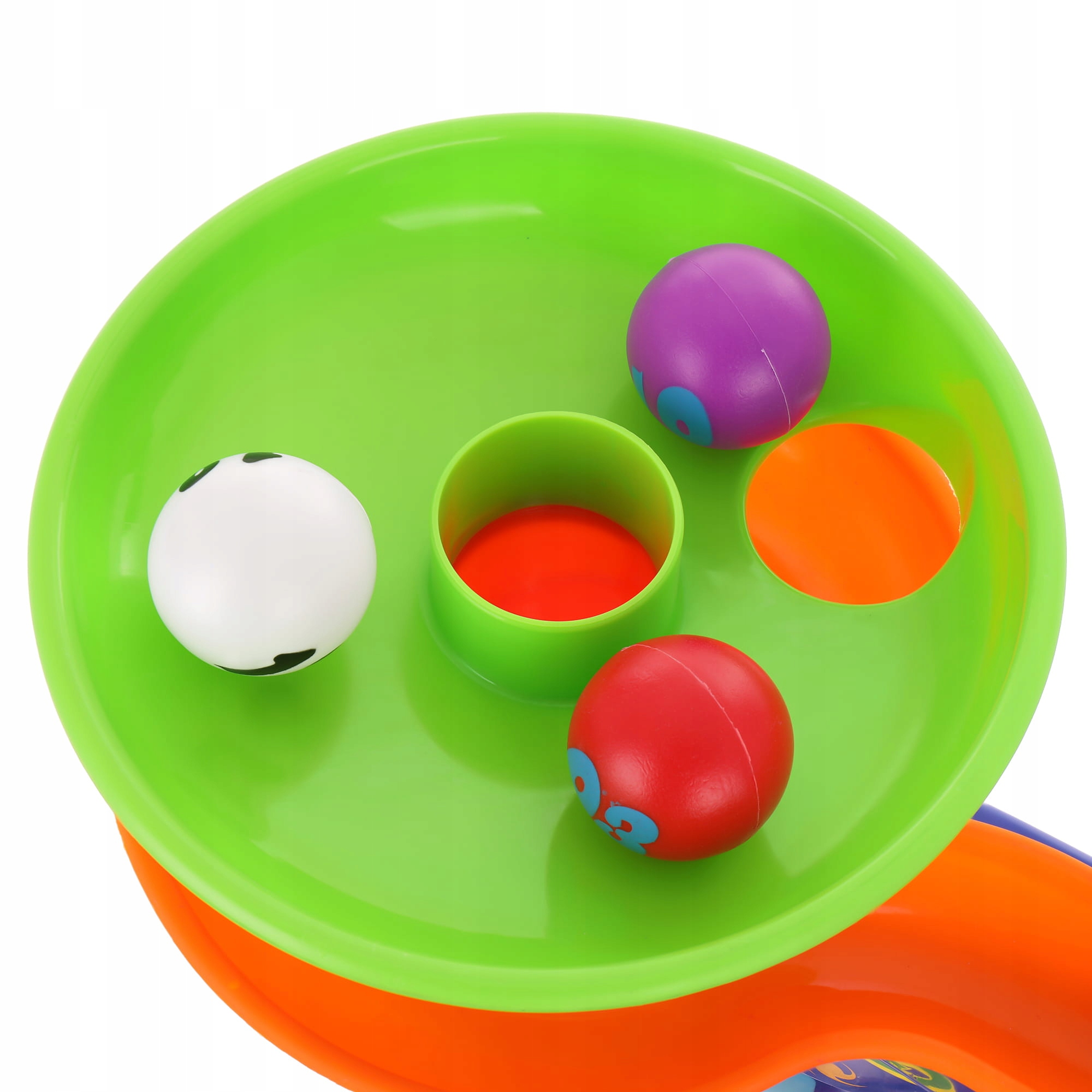 kombinacija zasukanega tobogana in norega izstrelitelja, ki bo vašemu malčku zagotovila ure fantastične zabave samemu ali z vrstniki ali sorojenci. Vaš otrok lahko meče žogice noter in jih opazuje, kako potujejo. Vsi elementi kompleta so okrašeni v izjemno zanimivih barvah, ki bodo zagotovo
