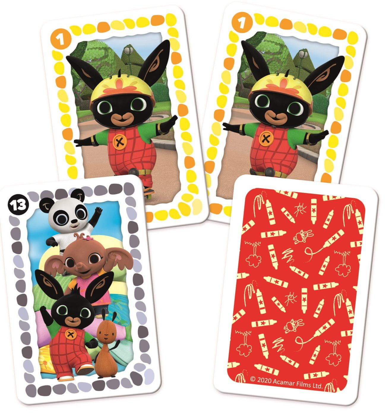 Otroška igra s kartami Črni Peter s slikami zajca Binga in njegovih prijateljev. Vseh 25 kart je razdeljenih med sodelujoče igralce, tako da ni jasno, kdo je dobil Črnega Petra. Igralci nato enake pare kart položijo na mizo (podlogo), preostale karte pa razporedijo po rokah. Igralci ponudijo svoje karte v krog in oblikujejo enake pare. Izgubi tisti, ki mu je v roki ostal Črni Peter. Pakiranje: 25 kart v kartonski škatli