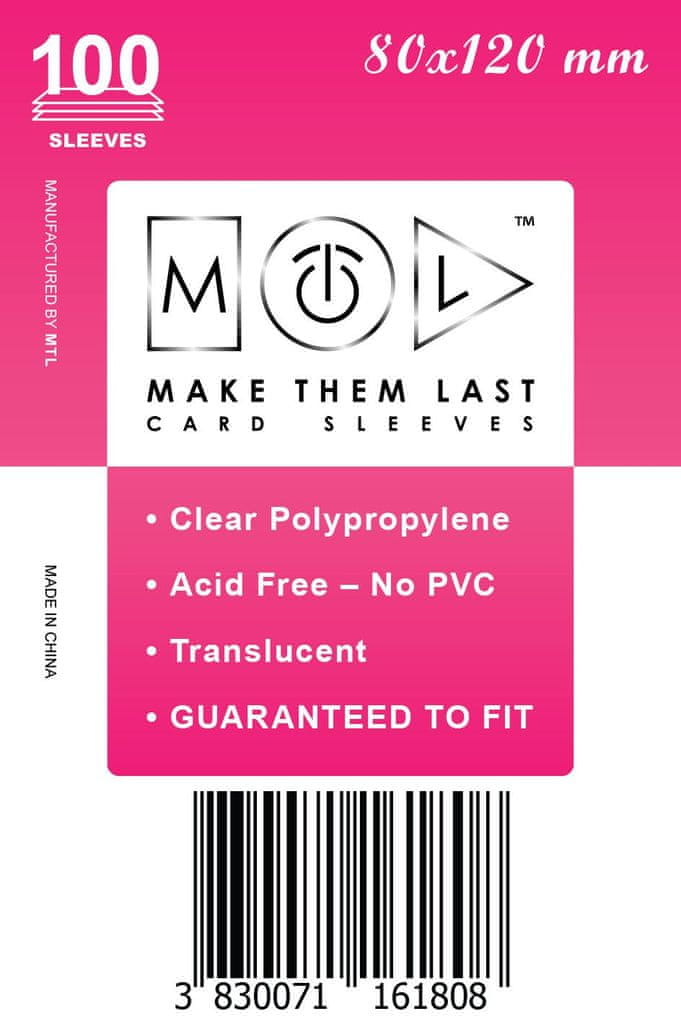 Ste naveličani obrabljenih in poškodovanih kart, ki pokvarijo tvoje igralne izkušnje? Ovitki za karte „Make Them Last – MTL“ so prav to, kar potrebuješ. Posebej oblikovani za karte določenih dimenzij. Ti zaščitni ovitki naredijo vaše karte trajne in odporne, ohranjajo jih sveže in svetle za številne igre. Ne dovolite, da vam obraba ovira pot – začnite novo poglavje svoje igralne poti z MTL ovitki. Vstopite v svet igre nepoškodovani.