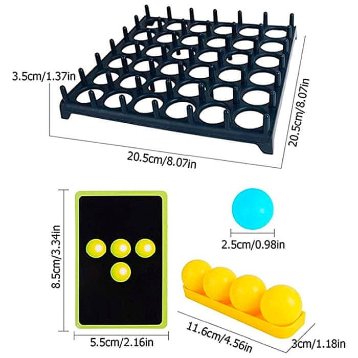 • Uporaba: Družabna igra za 2 ali več igralcev. Razdelite se v 2 ekipi, razdelite si žogice enake barve in postavite kartice na kupček s hrbtno stranjo navzgor. Prva ekipa je naključno izbrana in povleče 1 kartico. Z žogicami na igralni plošči skuša poustvariti vzorec s kartice. Žogica se mora 1× odbiti od mize nato pa pristati na pravilni poziciji. Če pristane napačno, je na vrsti naslednja ekipa. Tista ekipa, ki prva poustvari celoten vzorec, zmaga.