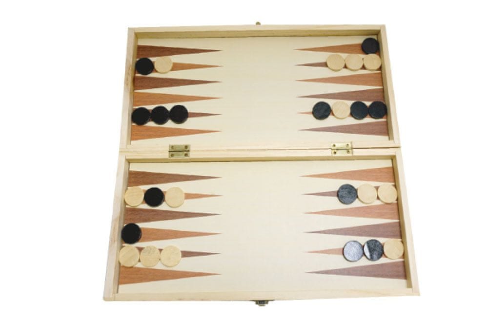 V kompletu boste našli 3v1 igre: šah, dama in „backgamon“. Lesen šah katerega velikost lesene igralne plošče je 34×34 cm vsebuje 32 lesenih šahovskih figuric, 30 lesenih ploščkova za igro dame ali za igro „backgamon“ ter 2 igralni kocki. Razgibajte in trenirajte možgane z lesenim šahom, damo ali igro „backgamon“ UNIKATOY.