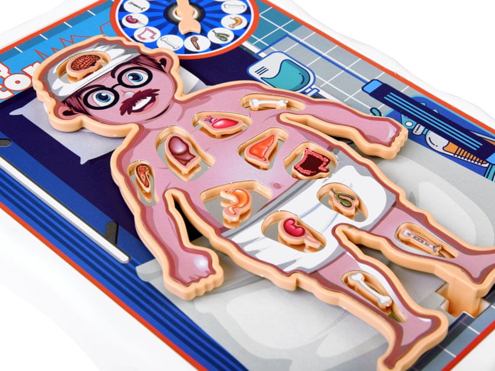 V zgornjem delu tabla tam je Obstaja puščica, ki jo mora vsak igralec zavrteti, ko je na vrsti. Puščica se bo ustavila na delu, ki ga bo moral odstraniti. Če puščica kaže na del, ki je že bil odstranjen, igralec ponovno vrti puščico, dokler ne pokaže na del, ki še ni bil odstranjen. Ko nariše del, mora igralec s pezetami nežno, ne da bi se dotaknil kovinskih plošč, izvleči del telesa, ki ga je narisal. Če se pacient ne premika, to pomeni uspešno operacijo, če pa se pacient trese, to pomeni slabo izvedeno operacijo. Igre bo konec, ko bodo odstranjeni vsi deli bolnikovega telesa. Zmaga zdravnik igralec z največ ""bolezenami"" operiranih!