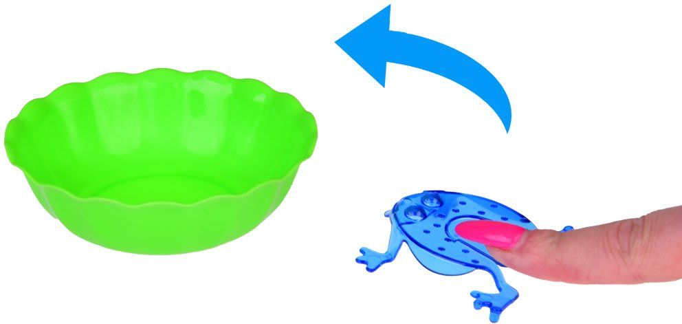 Igra razvija spretnosti in motorično koordinacijo, vadi koncentracijo in potrpežljivost, uči zdravega tekmovanja, prepoznavanja barv in štetja. Paket vsebuje: žabe v treh barvah in skledo.
