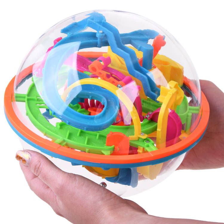 Inteligentna krogla Labirint je velika prozorna krogla, v kateri je ogromen barvit labirint s številnimi zavoji, predori in tobogani. V notranjosti žoge je skupaj z labirintom majhna kovinska kroglica, ki jo je treba s spretnimi gibi rok voditi skozi uličice labirinta do cilja. Na poti žogice so različne vrste ovir, vrtače, brezna, izbirate lahko med dvema različno oštevilčenima načinoma vodenja žogice, naloga je le pravilno premikanje žogice.