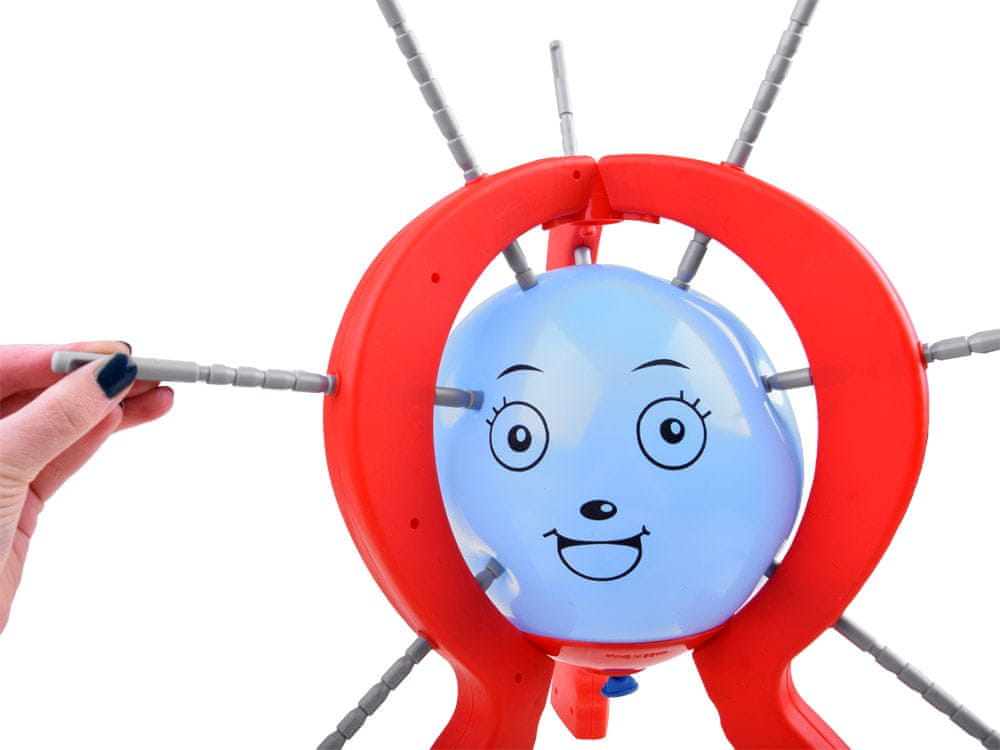 Po sestavljanju konstrukcije za balon in napihovanju balona vrzi kocko in obrni palico tolikokrat, kolikor pik na kocki je padlo. Bodite previdni! Preveč zasukov in balon bo izginil. Balon Boom Boom je namenjen dvema ali več igralcema, starejšim od 8 let, in ne potrebuje baterij.