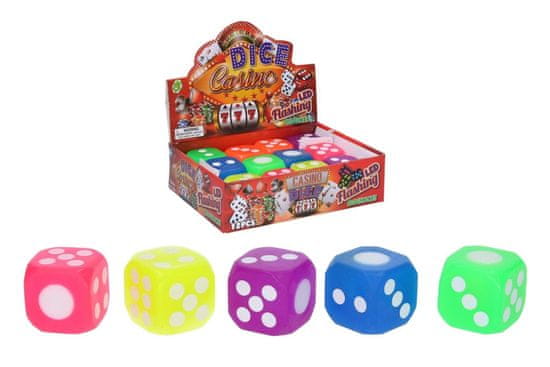 Izvedba kocke. Velikost 4 cm. Svetlobni učinki, baterij ni mogoče zamenjati. 12 kosov v razstavni škatli. 6 različic – oranžna, modra, zelena, rumena, vijolična, roza.