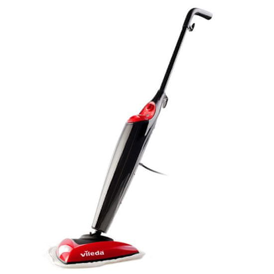 Delovanje pare skupaj s prevleko iz mikrovlaken poskrbi, da so tla popolnoma čista – brez uporabe kemikalij. K popolni čistoči dal doprinese vrtljiva, trikotno oblikovana glava za lažje čiščenje v kotih in okoli pohištva. Na delovanje je parni čistilnik Vileda Steam pripravljen v pičlih 15 sekundah. Navdušeni boste še nad njegovo nizko težo, zahvaljujoč kateri ga boste zlahka prenašali po stanovanju. Dodatna prednost čistilnika je še dodatek za čiščenje preprog, ki bo poskrbel, da bodo tudi te nepremagljivo čiste.