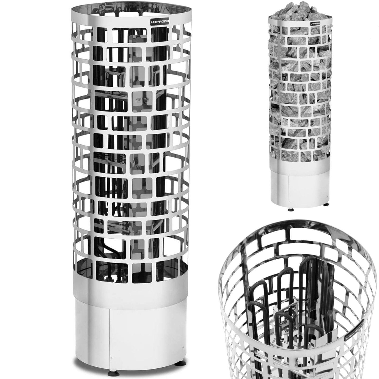 Proizvajalčeva šifra: 10250210 Uniprodo peč za savno je odlična za savne v domovih, hotelih, zdraviliščih in rekreacijskih centrih. Visoka moč 9 kW omogoča hitro doseganje temperature 110°C, ki jo uravnava termostat. Naprava bo dobro delovala v prostorih velikosti 9–13 m3. Peč je izdelana iz nerjavečega jekla in je zelo odporna na poškodbe in korozijo. Stopnja zaščite IPX4 pomeni odpornost na vodo. Razgrete kamne lahko prelijemo z vodo, da povečamo vlažnost. 4 gumirane nogice preprečujejo drsenje in ščitijo tla pred praskami. Nizka teža omogoča udobno prenašanje. Zaščita pred pregrevanjem zagotavlja varno uporabo peči. Lastnosti izdelka: – Za prostore s povprečno prostornino 9–13 m3, – Iz vodoodpornega nerjavečega jekla, – Moč 9 kW prilagojena velikosti prostora, – Hitro doseganje visoke temperature do 110°C, – Stabilnost zahvaljujoč 4 gumijastim nogicam. Tehnični parametri: – Model – UNI_SAUNA_V9.0KW – Kataloška številka – 10250210 – Stanje artikla – Novo – Moč – 9 kW – Napajanje – 400 V 3 N~ – Velikost savne – 9–13 m3 – Dovoljena teža kamnov – 60 kg – Material – Nerjaveče jeklo – Barva – Srebrna – Funkcije – Suha savna z ustvarjanjem pare – Temperaturno območje – 30–110°C – Stopnja zaščite IP – IPX4 – Dimenzije (DxŠxV) – 30,00 × 30,00 × 93,00 cm – Teža – 10,00 kg – Dostava dimenzije (DxŠxV) – 35,00 × 36,00 × 98,00 cm – teža pošiljke – 10,20 kg Set vsebuje: – peč za savno – pribor za montažo – navodila za uporabo