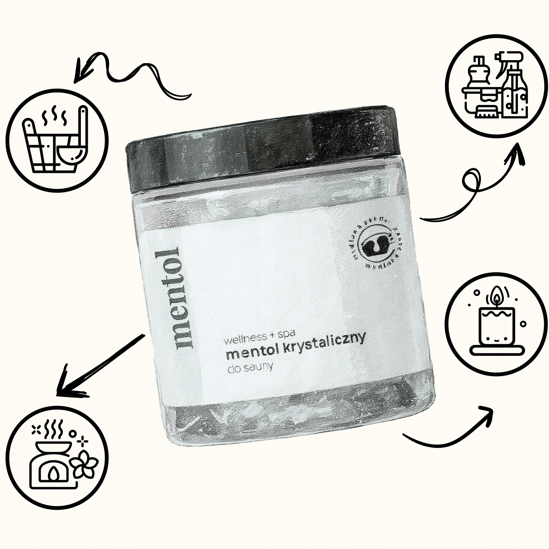 Predstavljajte si hladen, prodoren dih mete, ki vas objame v savni, kopeli ali med vdihavanjem. Kristalni mentol je bistvo svežine – intenzivna, ledena aroma, ki zbistri um, napolni z energijo in olajša dihanje.