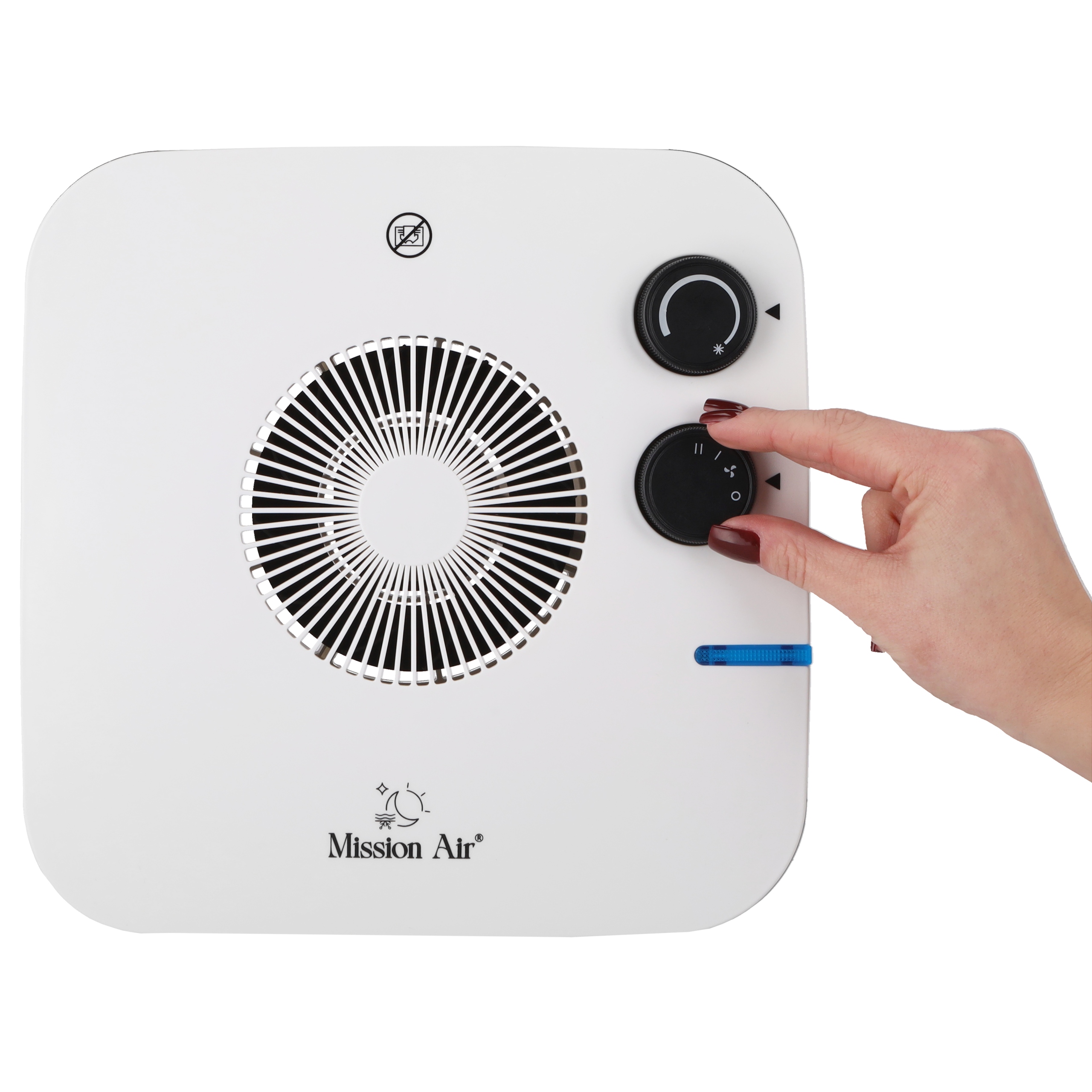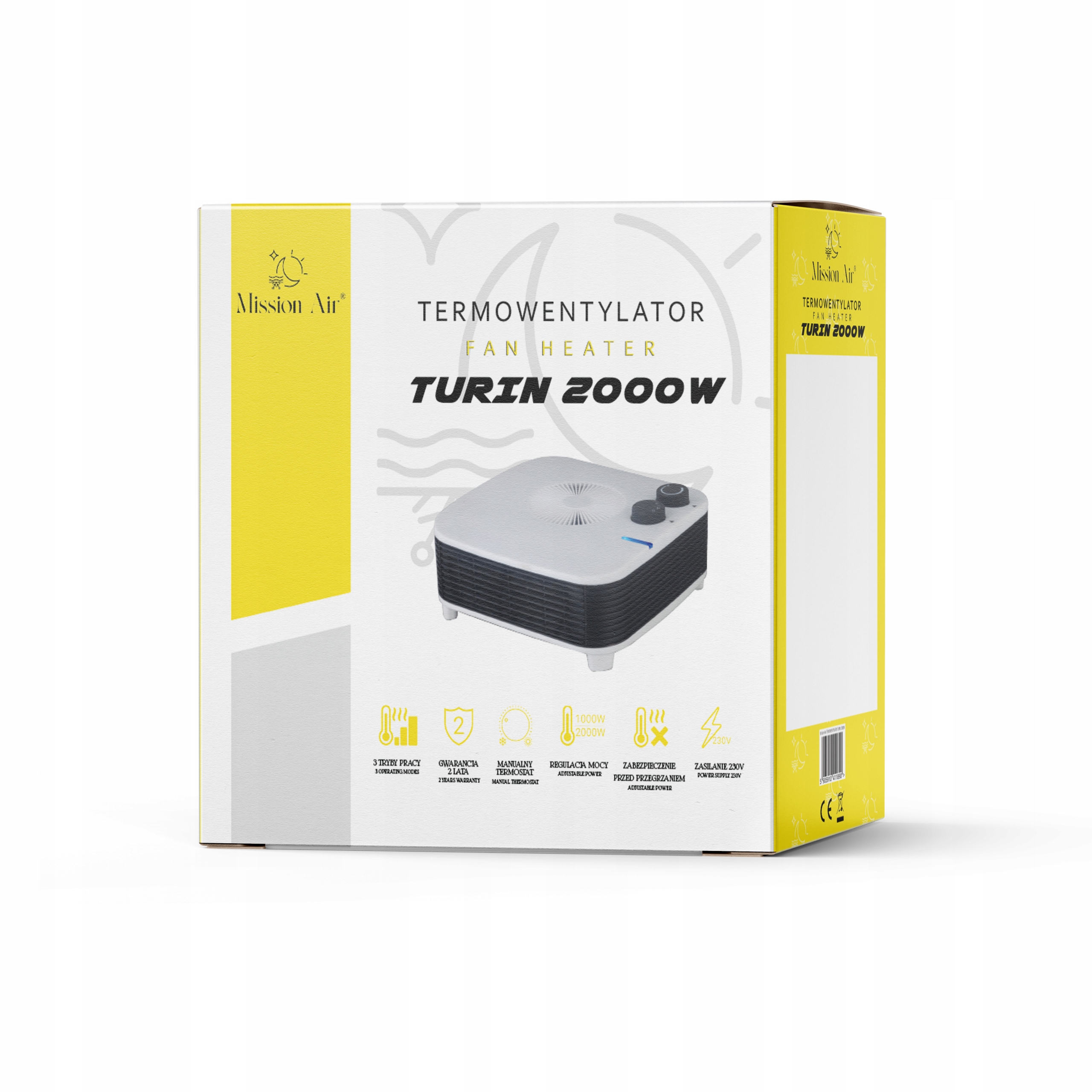 Ventilatorski grelnik MissionAir Turin ima tri funkcije: vroč, topel in hladen zrak, ter dvostopenjsko regulacijo moči: 1000/2000 W .