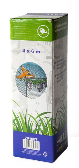 Mreža za zaščito pred pticami 4× 6m Z mrežo lahko prekrijete drevesa ali grmovnice. Je lahka, trpežna in enostavna za uporabo. Lahko jo razrežete in oblikujete za manjše velikosti ter je odporna na UV-žarke. Ne ovira naravnega pretoka zraka, sončne svetlobe ali vlage. Velikost: 4 × 6 m Material Celoten opis