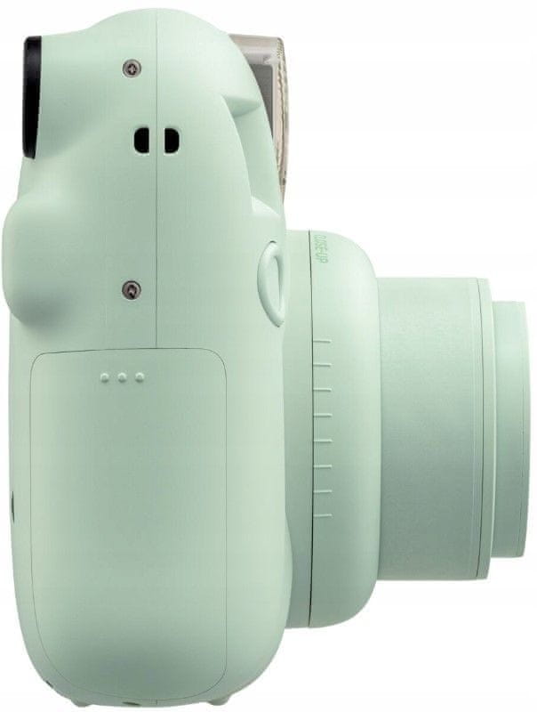 Ob pogledu na fotoaparat FujiFilm Instax mini 12 se človek kar stopi – je tako prikupno oblikovan! Navdih za videz fotoaparata so bili milni mehurčki. Velika prednost je tudi preprosto upravljanje, ki ga lahko vsakdo takoj osvoji. Ob objektivu je zrcalo, s katerim lahko nadzirate videz selfijev. Fotoaparat ima avtomatski nadzor bliskavice, ki preprečuje, da bi slike zbledele. Sveže posneto sliko natisne na kraju samem v 90 s.