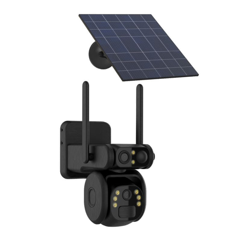 Zunanja sončna kamera Y10–4G-Q11 z dvema objektivoma je zasnovana za avtonomni video nadzor na mestih, kjer kamere ni mogoče napajati iz električnega omrežja in kjer ni povezave z omrežjem WiFi. To kamero napaja vgrajena baterija, ki se čez dan polni s sončno energijo prek priložene solarne plošče Zaradi tega lahko naprava ves čas deluje popolnoma avtonomno, vse dogodke pa lahko priročno spremljate prek mobilne aplikacije s katere koli lokacije. Z dvema kamerama, ki delujeta neodvisno, lahko kamera spremlja večje območje želenega območja.