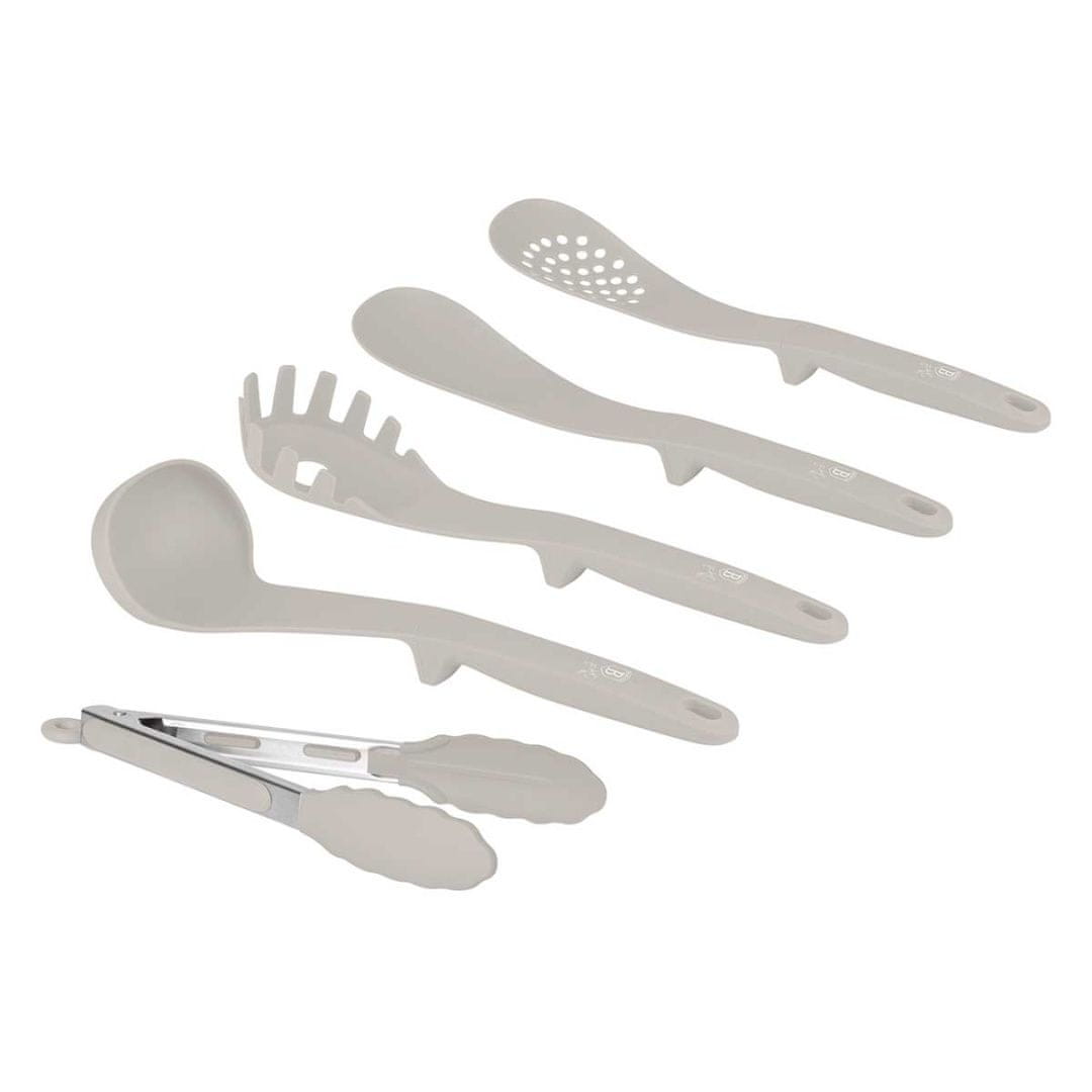 5-delni komplet kuhinjskih pripomočkov iz najlona znamke BERLINGER HAUS iz kolekcije Sahara. Ti pripomočki so še posebej priporočljivi za posodo s keramično in teflonsko prevleko. Material, iz katerega so izdelani, ne opraska površin posode. Odporen je na vročino do 210 stopinj Celzija in ima posebne antibakterijske lastnosti.