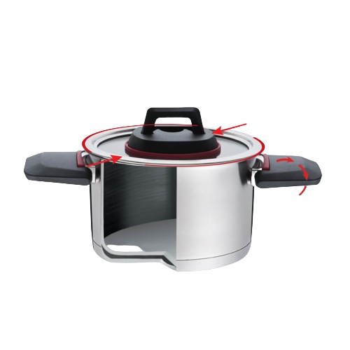 Prva stvar, ki pade v oči, so seveda zložljivi elementi: vsak ročaj in pokrov lonca se lahko enostavno zloži, kar prihrani veliko prostora. Vsak lonec je mogoče shraniti v drugega, zato komplet zavzame relativno malo prostora v kuhinjski omari ali na polici. To je idealna rešitev za majhne kuhinjske prostore.