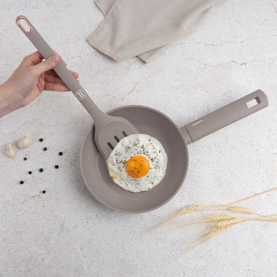 6-delni komplet kuhinjskih pripomočkov iz najlona znamke BERLINGER HAUS iz kolekcije Taupe. Ti pripomočki so še posebej priporočljivi za posodo s keramično in teflonsko prevleko. Material, iz katerega so izdelani, ne opraska površin posode. Odporen je na vročino do 210 stopinj Celzija in ima posebne antibakterijske lastnosti.