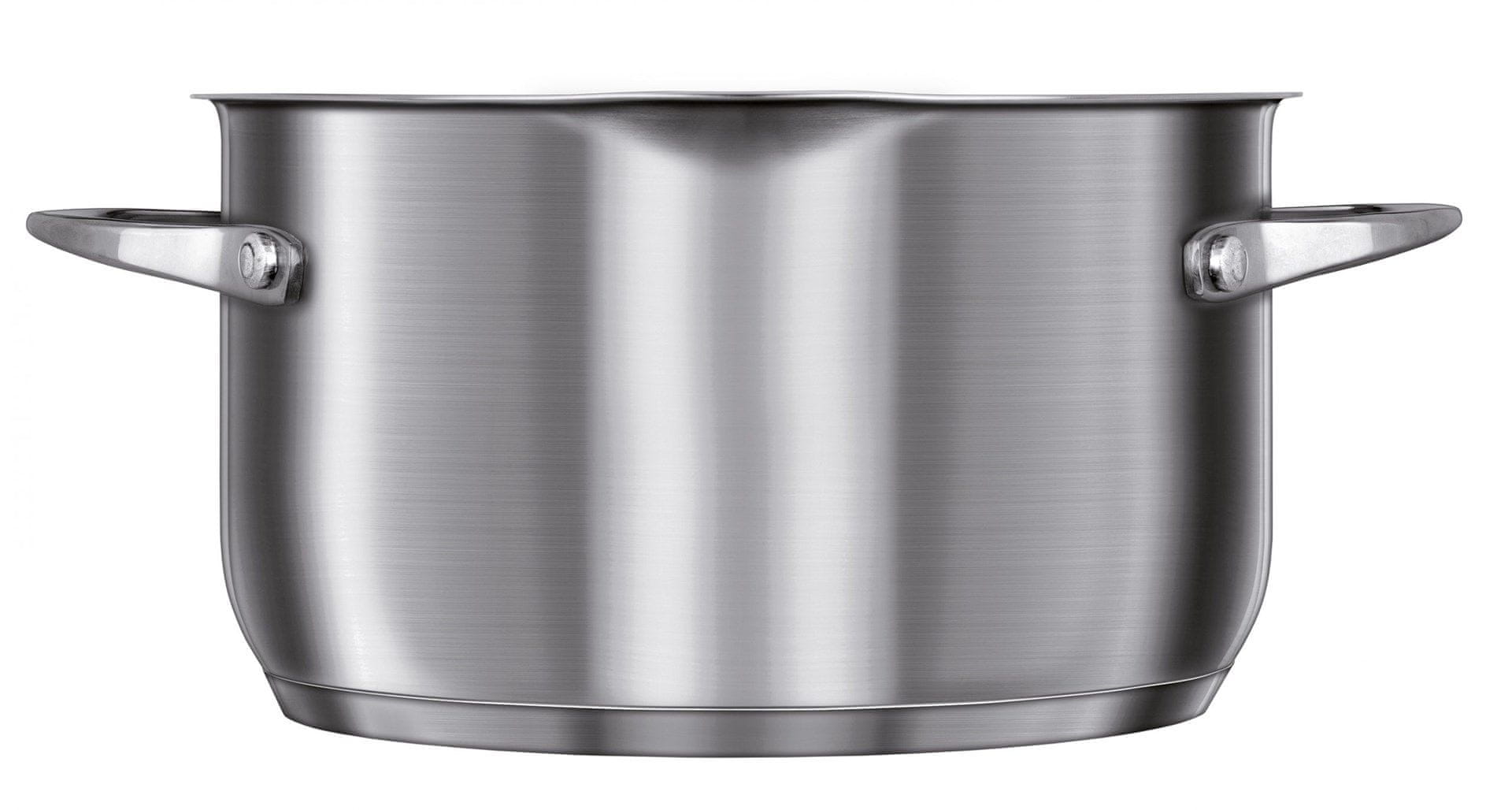 – Kozica s steklenim pokrovom, dimenzije: 16 × 9,5 cm (1,9 l) – Lonec s steklenim pokrovom, dimenzije: 20 × 11,5 cm (3,6 l) – Lonec s steklenim pokrovom, dimenzije: 24 × 13,5 cm (6,1 l) – Ponev za cvrtje, dimenzije: 24 × 5 cm