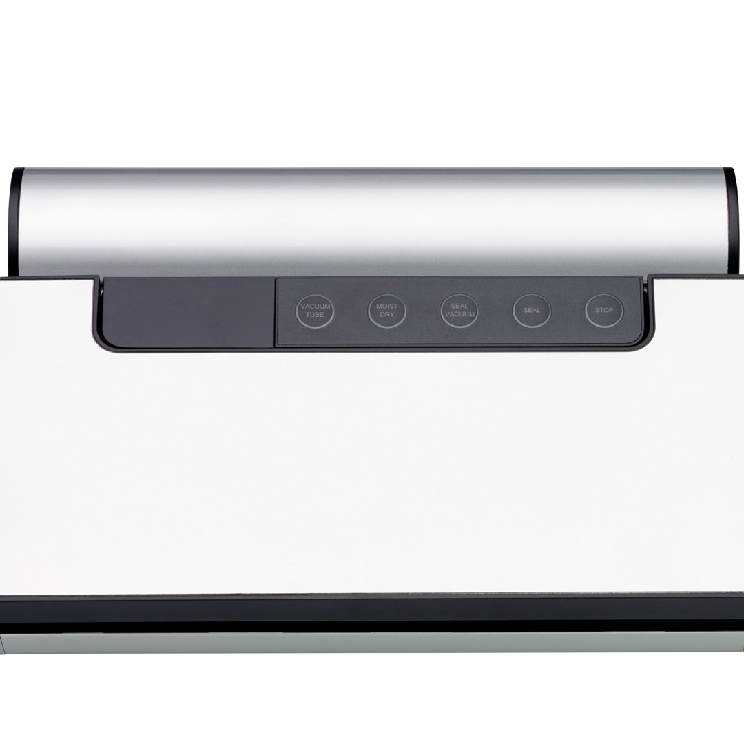 Napravo uporabljajte enostavno in učinkovito. Izdelek ima 5 osvetljenih funkcijskih tipk, ki ponujajo možnosti za ročno vakuumiranje in zapiranje, samodejno vakuumiranje in zapiranje ter funkcije za suho ali vlažno hrano, skupaj z gumbom za ročno zaustavitev naprave.