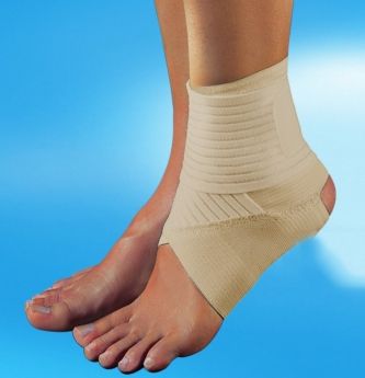 1. Elastični del bandaže potegnite čez stopalo. Glejte tudi sliko levega gležnja (za desni gleženj notranji del bandaže obrnite navzven).