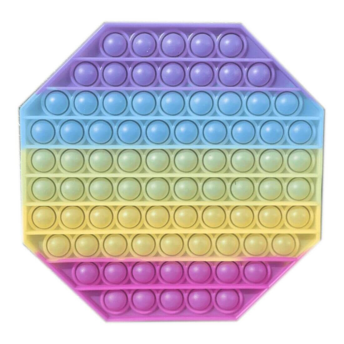 POP IT UV je transparente barve, ki se na soncu spremeni v pastelno mavrične barve. Priložena je tudi sponka za obešanje pop it-a.