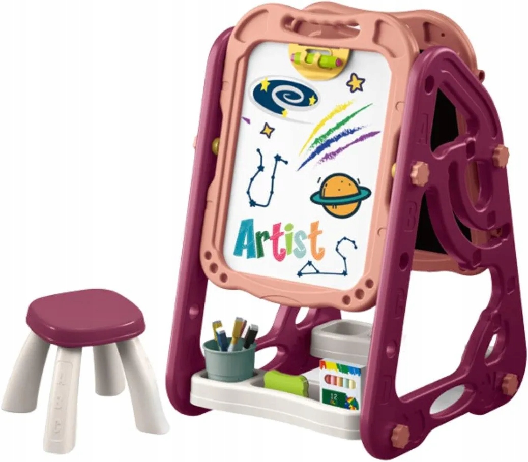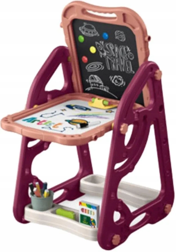 ? Iščete darilo, ki bo trajalo leta? Dvostranska tabla „Mali umetnik“ s stolom ni le vir zabave, temveč tudi razvojno orodje. Vsak mladi ustvarjalec bo navdušen nad možnostjo risanja, pisanja in učenja vse v enem, zato je ta komplet odlično darilo za rojstne dneve, praznike ali preprosto kot posebno presenečenje!