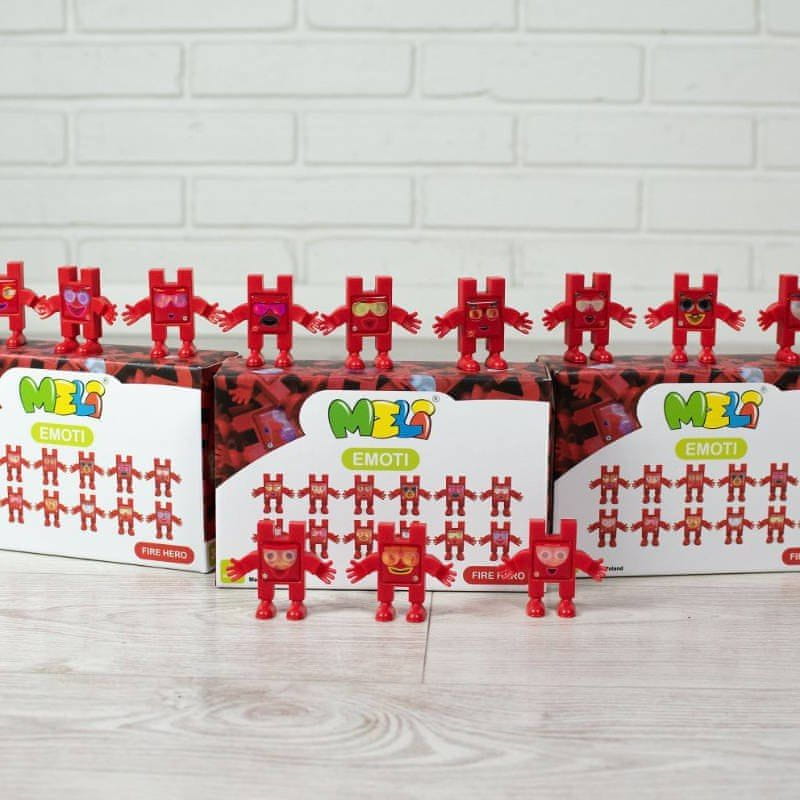Figurice so izdelane iz istega varnega materiala kot kocke MELI – brez ftalatov, BPA in PVC-ja. Obrazi figuric so rahlo profilirani, gel nalepke, ki dajejo tridimenzionalni učinek . Otroci lahko nalepke nalepijo sami, kar še dodatno razvija njihove ročne spretnosti. Prijazni, kompaktni liki so oblikovani kot kocke MELI MAXI, zaradi česar so popolnoma združljivi z drugimi elementi iz te serije.