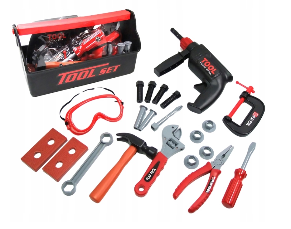 shumee KOMPLET ZA DELAVNICO ORODJE V ŠKATLI VRTALNIK OČALA KLJUČ MERILNI